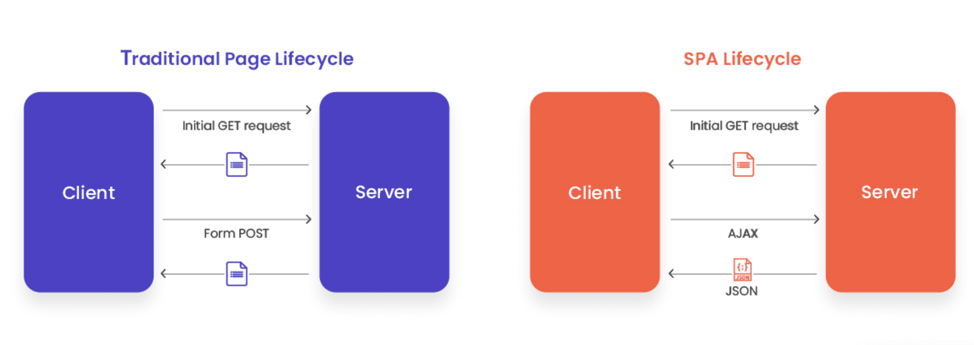 Routing - The traditional approach is about having a lot of links in your application; for each URL, the browser needs to request the server for new resource files. With SPA, routing is handled by JS without making additional requests for resources.