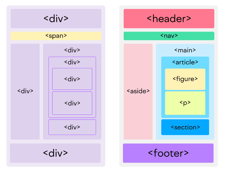 While you can build your whole website out of div elements that are styled and hooked up with JS to do whatever you need, this approach is far from optimal. It's better to use correct HTML tags for the purposes they were made for. Let's take this awful HTML snippet as an example: